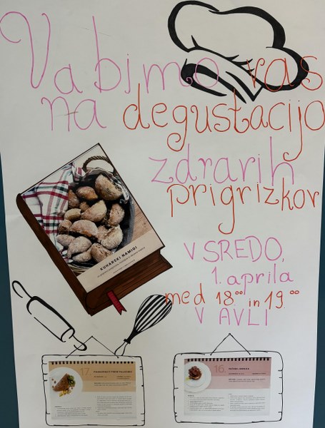 Dijaki in vzgojitelji ste vabljeni na degustacijo, ki bo v avli med 18:00 in 19:00.